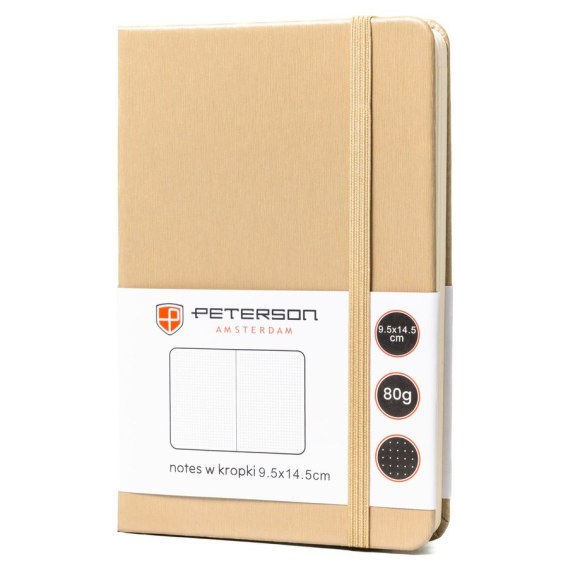 Beżowy notes w formacie A6 zadrukowany w kropki, wyposażony w gumkę zamykającą - Peterson