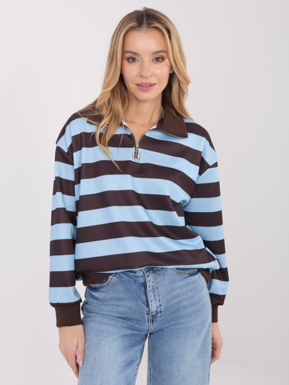 Bluza damska w paski z kołnierzykiem i suwakiem – jasnoniebieska | Italy Moda