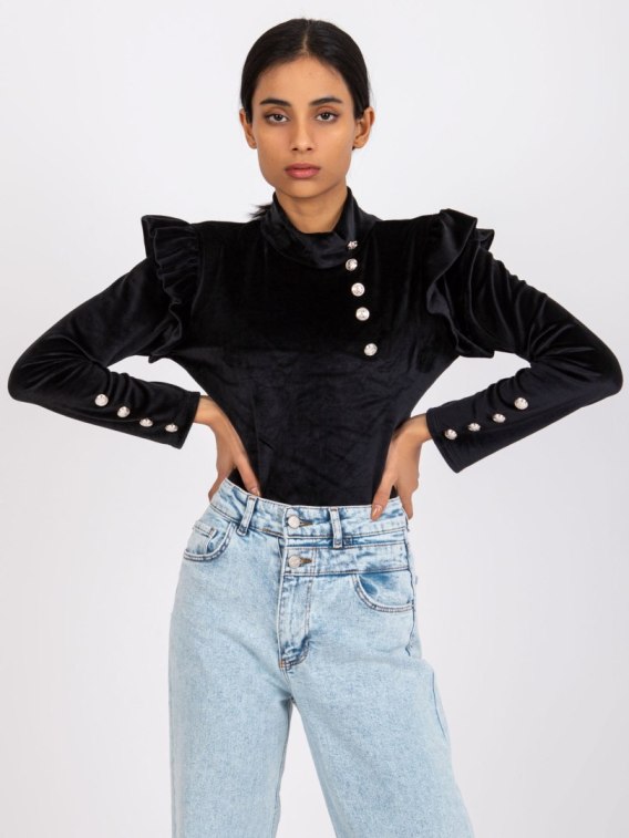 Bluzka czarna Capri z guzikami i falbanką welurowa
