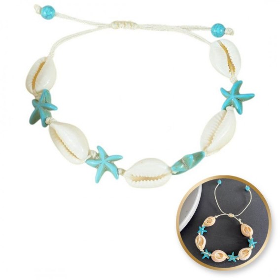 Bransoletka 2w1 na stopę i rękę na sznurku, MUSZELKI i ROZGWIAZDY B543N