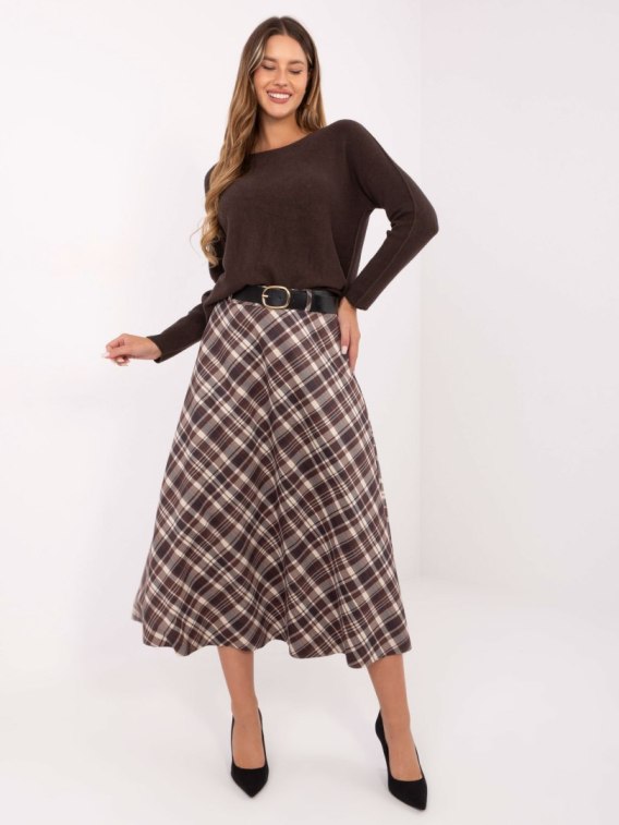 Brązowa midi spódnica w kratę RUE PARIS – elegancja i komfort w jednym