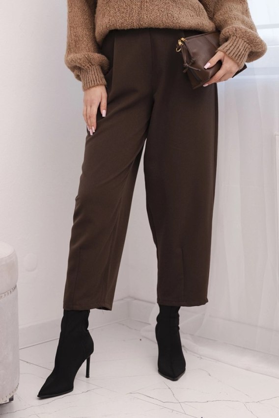 Brązowe eleganckie spodnie damskie z wysokim stanem i zakładkami – Włoski krój
