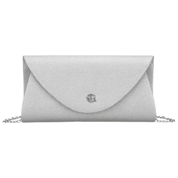 Brokatowa kopertówka damska wykonana z tkaniny syntetycznej w srebrnym kolorze - Rovicky