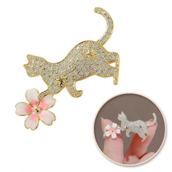Broszka kotek z kwiatkiem to idealny prezent dla miłośniczek zwierząt, elegancji i niebanalnych dodatków.
