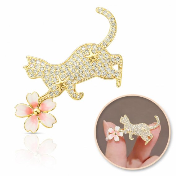 Broszka ozdobna emaliowana - kotek z kwiatkiem BZ211