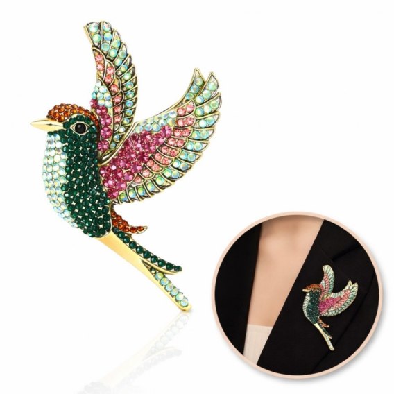 Broszka ozdobna - kolorowy ptak, cyrkonie BZ222