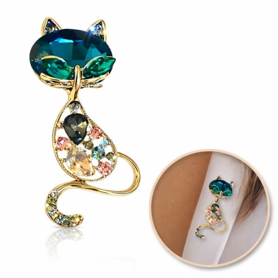 Broszka ozdobna kryształki niebieski i zielony KOTEK BZ173