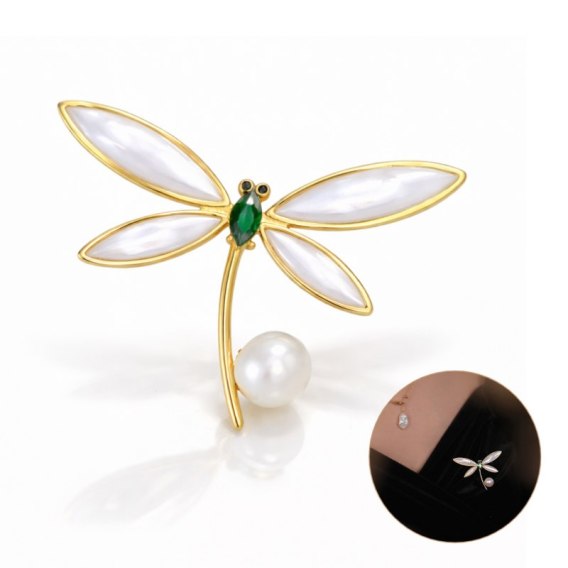 Broszka ozdobna - kryształowa WAŻKA z perłą BZ233