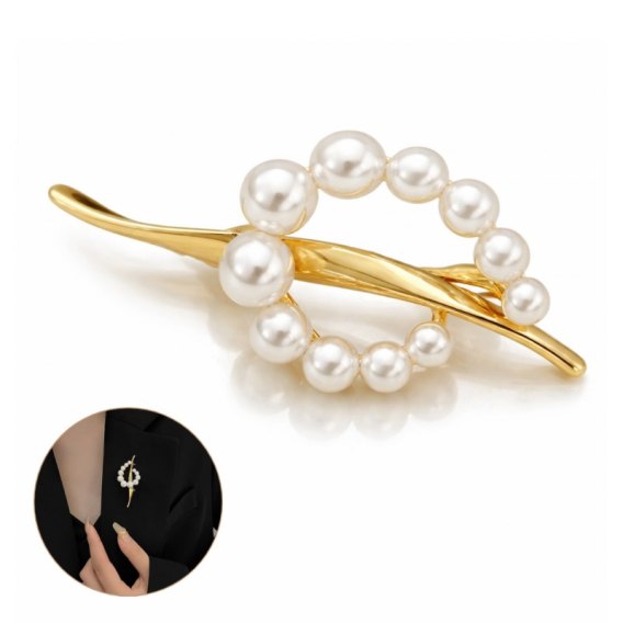 Broszka ozdobna - przeplatana złota z perłami BZ226