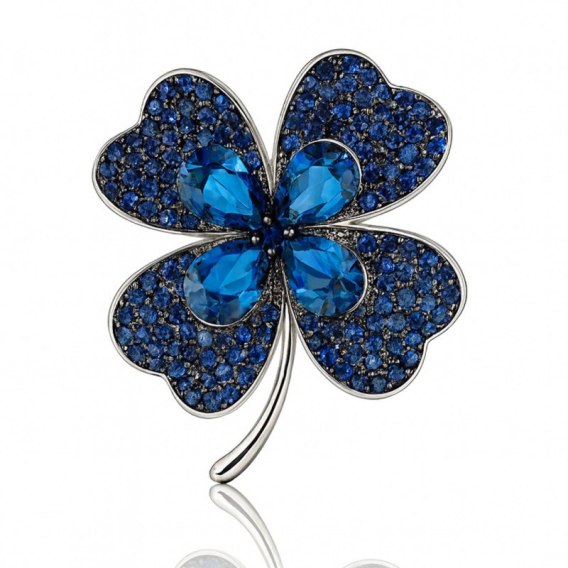 Broszka BZ218 w kształcie czterolistnej koniczyny to symbol pomyślności i elegancji w jednym. Wykonana z dbałością o każdy detal, zdobiona błyszczącymi szmaragdowo-niebieskimi kryształkami, pięknie odbija światło i przyciąga wzrok.