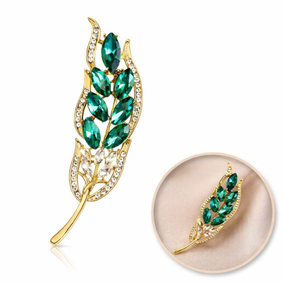 Broszka ozdobna - zielony kłos z cyrkoniami BZ214