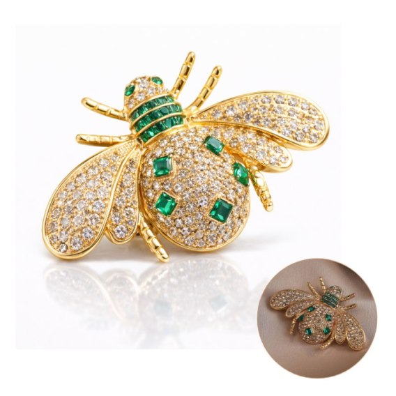 Broszka ozdobna - złoty Owad z zielonymi cyrkoniami BZ235