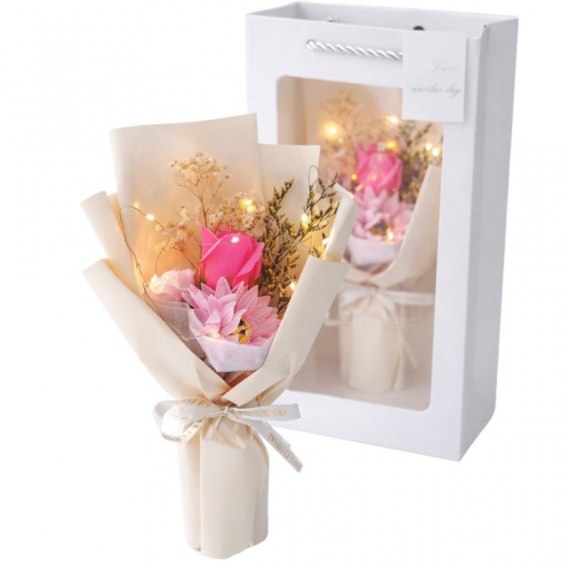 Bukiet zapachowych kwiatów mydlanych w pudełku na prezent, świecące LED BUK17R