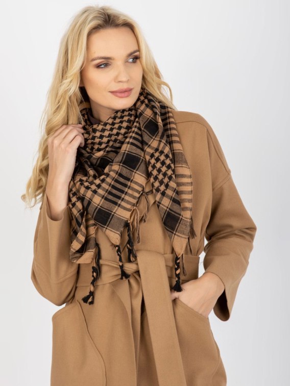 Beżowo-Czarna Chusta Arafatka w Kratę – Stylowy Akcent od Stylowy Wieszak