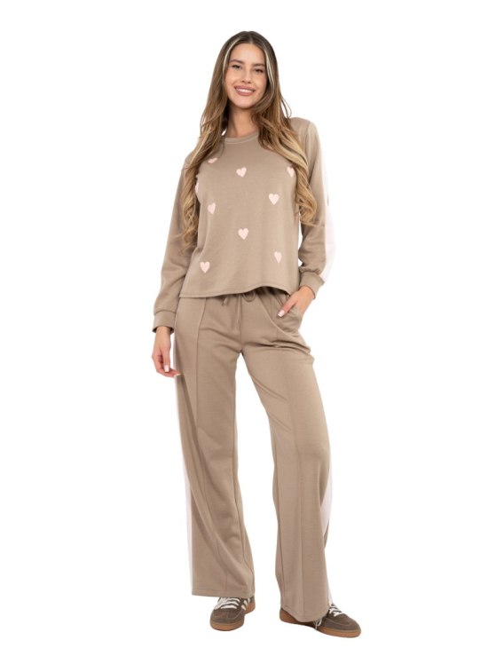 Ciemnobeżowy komplet damski z bluzą w serduszka RUE PARIS