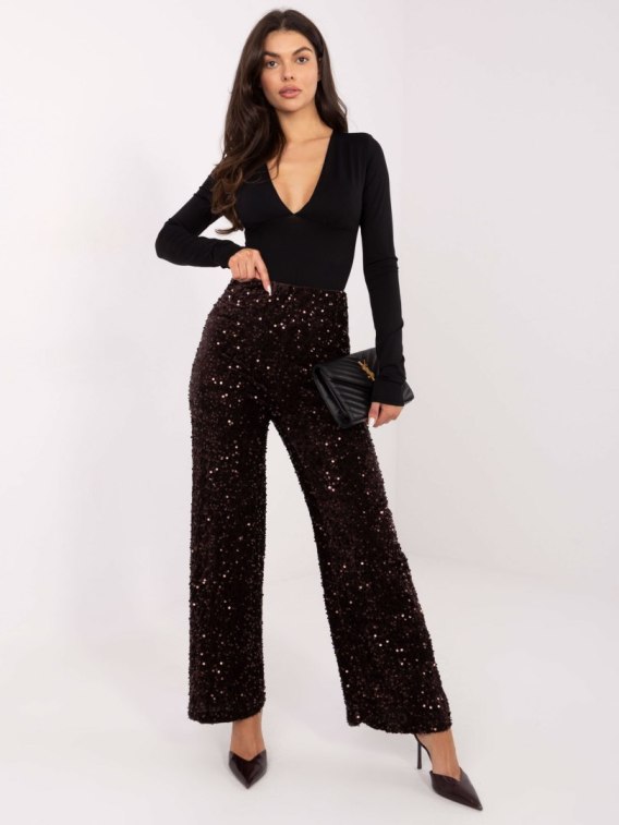Ciemnobrązowe wizytowe spodnie damskie z cekinami ITALY MODA