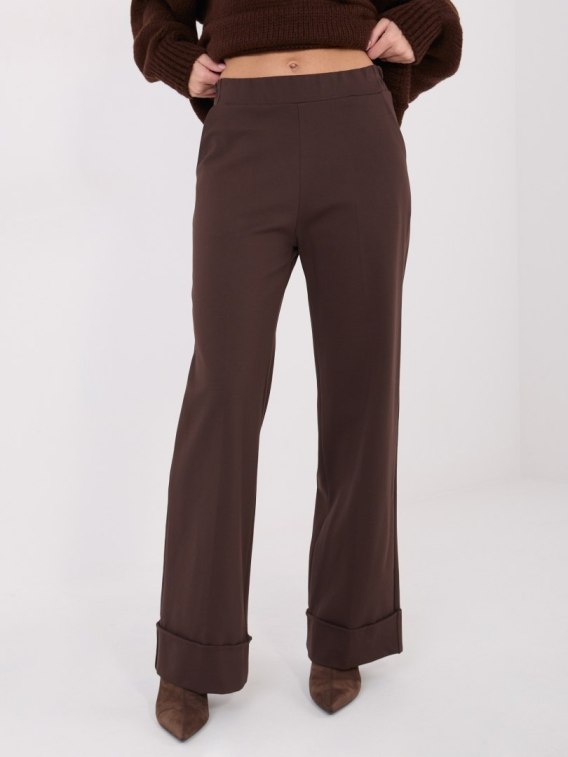 Ciemnobrązowe spodnie damskie wide leg bez zapięcia RUE PARIS – rozmiar L/XL