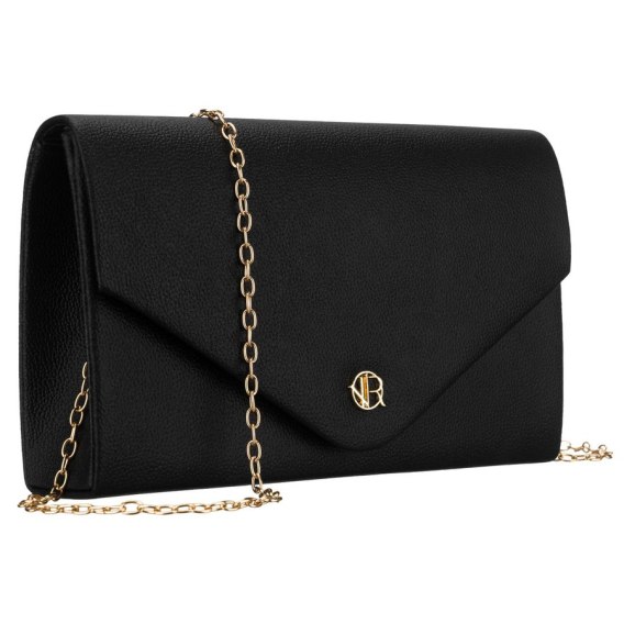 Kopertówka damska ze skóry ekologicznej w czarnym kolorze. Zawieszona na złotym łańcuszku, który dodaje biżuteryjnego charakteru. Jako torebka wizytowa i torebka wieczorowa dopełni eleganckie stylizacje. Jednokomorowa.