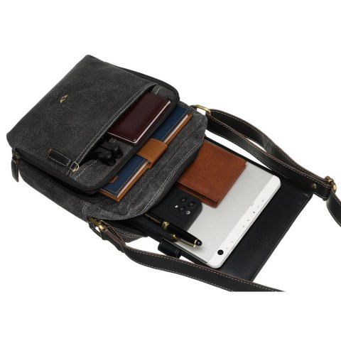 Czarna, miejska listonoszka męska ze skóry naturalnej z kieszonką na telefon - Peterson