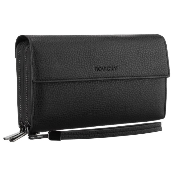 Czarna saszetka męska ze skóry ekologicznej idealna na dokumenty - Rovicky