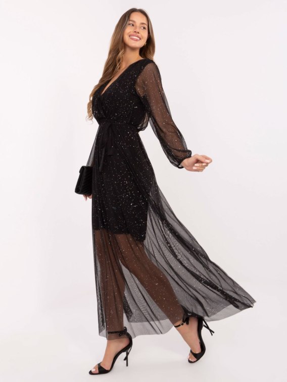 Czarna wieczorowa sukienka z wiązanym paskiem – ITALY MODA
