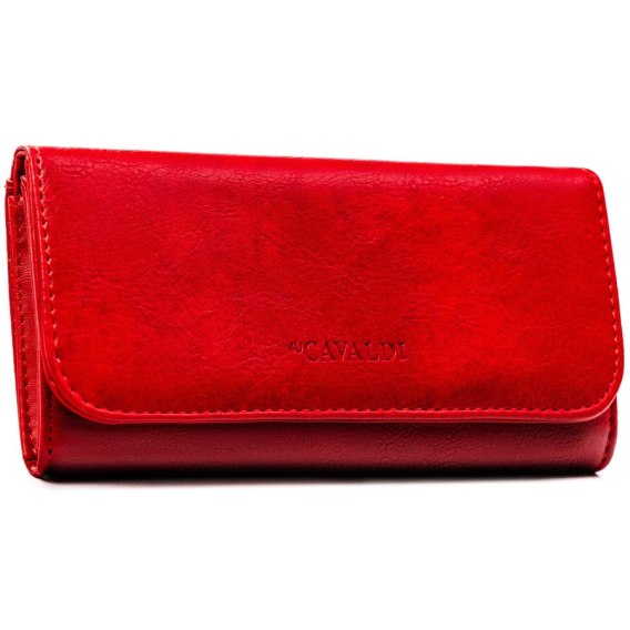 Czerwony, duży portfel damski ze skóry ekologicznej zamykany zatrzaskiem - 4U Cavaldi