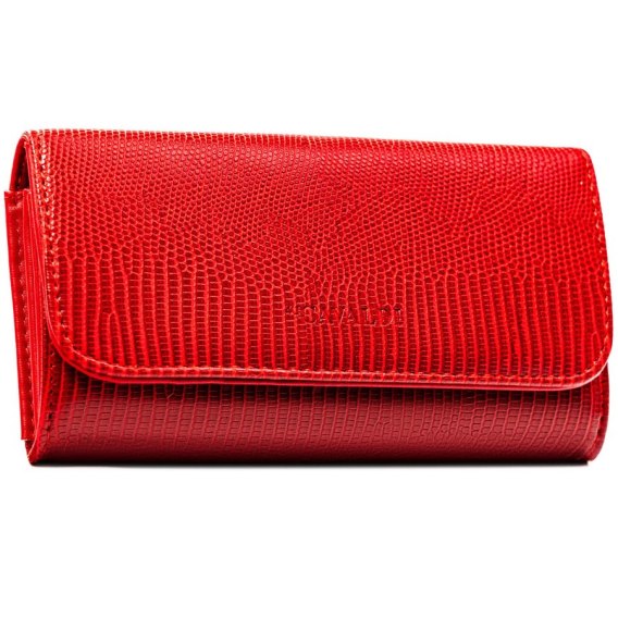 Czerwony, poziomy portfel damski ze skóry ekologicznej zamykany zatrzaskiem - 4U Cavaldi
