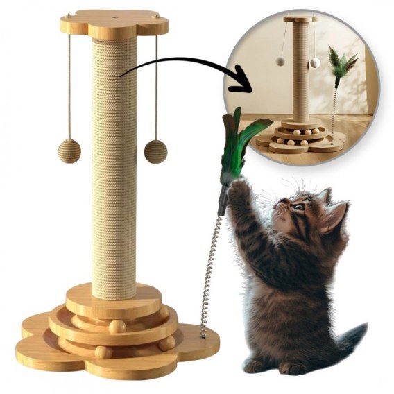 Drapak dla kota 43cm, 4w1 zabawka piłki, kulki, piórka KOT22