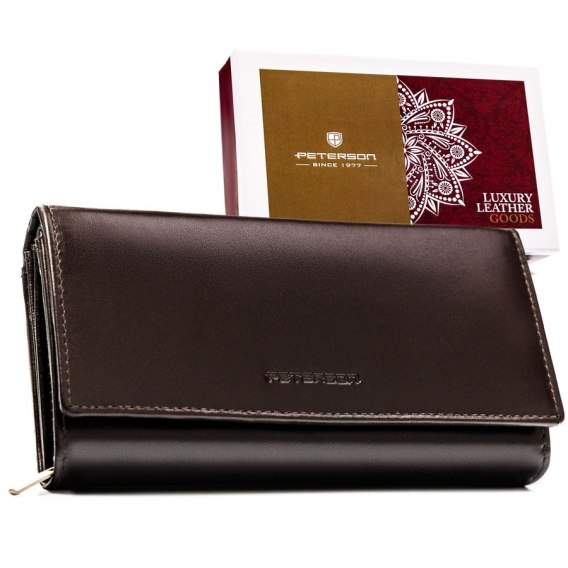 Duży, brązowy portfel damski ze skóry naturalnej z systemem RFID - Peterson