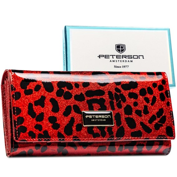 Duży portfel damski ze skóry ekologicznej i naturalnej w czerwonym kolorze zamykany zatrzaskiem - Peterson
