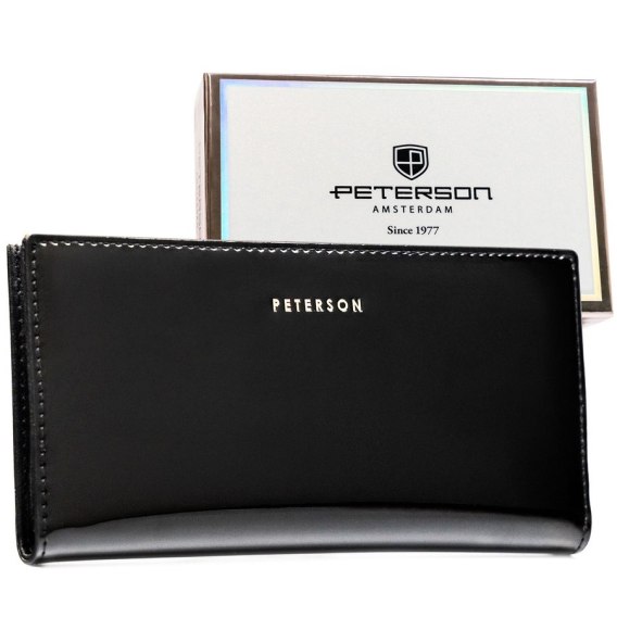 Ten duży portfel damski marki PETERSON to połączenie ponadczasowego stylu z funkcjonalnością. Wykonany z wysokiej jakości skóry ekologicznej, jest wyjątkowo trwały, miękki w dotyku i prezentuje się niezwykle szykownie. Lakierowane wykończenie nadaje mu elegancji i sprawia, że staje się modnym dodatkiem na każdą okazję.