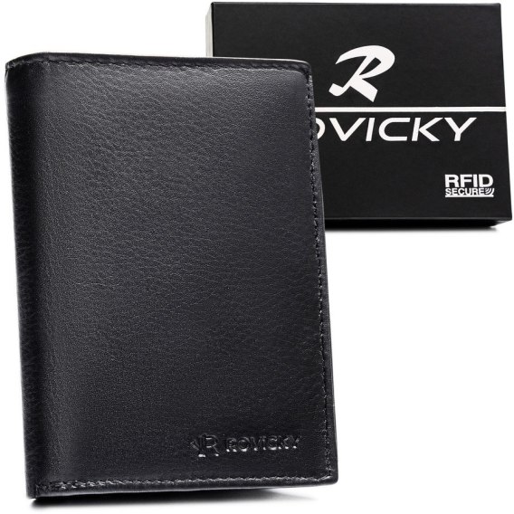 Duży portfel męski ze skóry naturalnej w czarnym kolorze, mieszczący dowód rejestracyjny - Rovicky