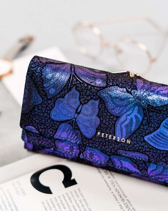Duży, skórzany portfel damski na zatrzask i bigiel — Peterson