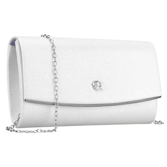 Elegancka kopertówka damska w srebrnym kolorze wykonana ze skóry ekologicznej, zawieszona na łańcuszku - Rovicky