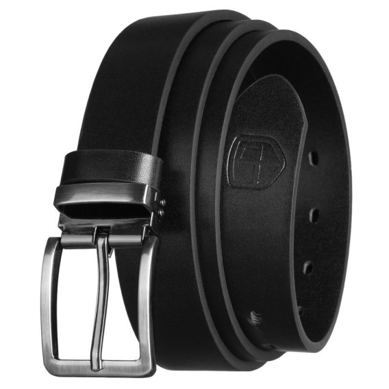 Elegancki pasek męski ze skóry ekologicznej w czarnym kolorze z tradycyjną klamrą - Peterson
