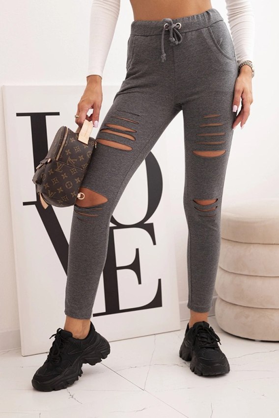 Grafitowe bawełniane spodnie damskie z przetarciami – styl i wygoda na co dzień