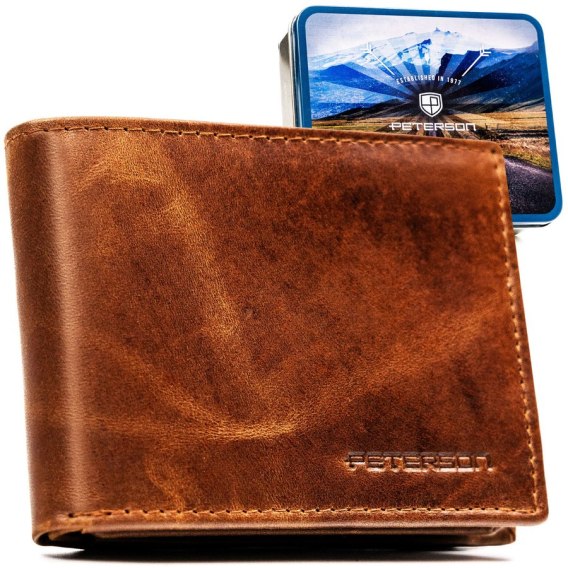 Jasnobrązowy portfel męski ze skóry naturalnej bez zapięcia zewnętrznego - Peterson