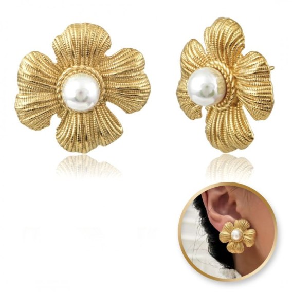 Kolczyki KWIATY ze stali szlachetnej platerowane 14k złotem, sztyft perły KST3323