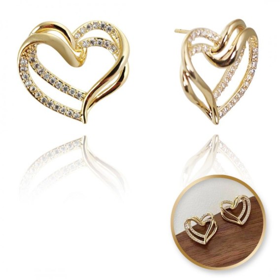 Kolczyki SERCA ze stali szlachetnej platerowane 14k złotem, cyrkonie, sztyft srebro S925 KST3331