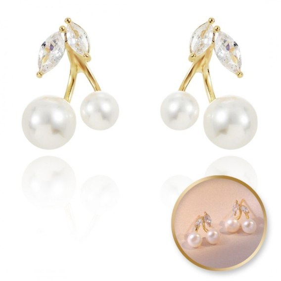 Kolczyki WISIENKI ze stali szlachetnej pozłacanej 14k złotem cyrkonie, sztyft srebro S925 perły KST3334