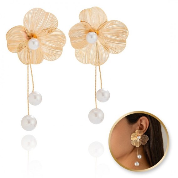 Kolczyki wiszące duże eleganckie Kwiaty z perłami 4,6 x 10,6 cm K1696