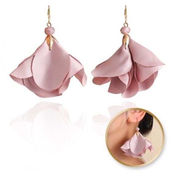 Kolczyki wiszące, efektowne materiałowe kwiaty, koraliki K1703