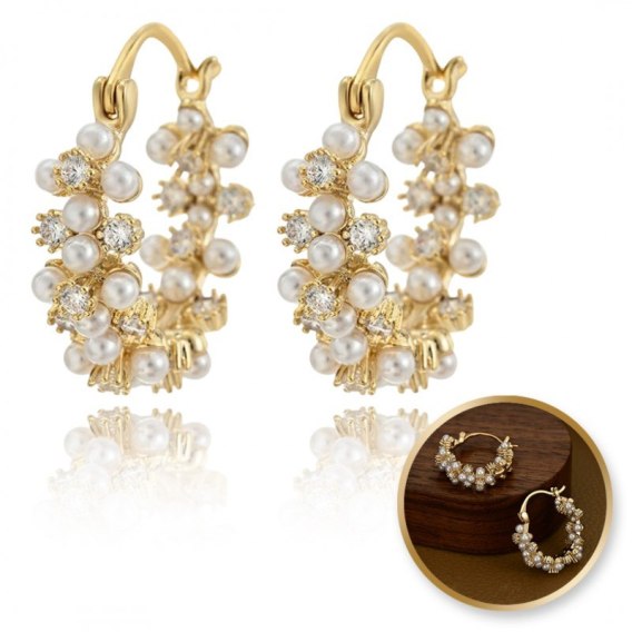 Kolczyki wiszące ozdobne - perły, cyrkinie KST3414