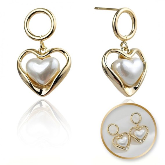 Kolczyki ze stali szlachetnej platerowane 14k złote, perły SERCA, sztyft srebro S925KST3341