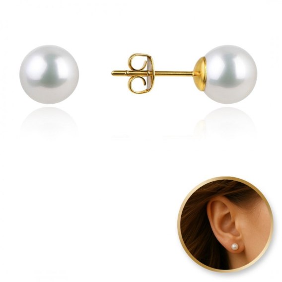 Kolczyki ze stali szlachetnej platerowane 14k złotem, sztyft, perła KST3420