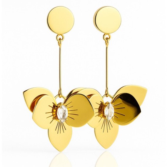 Kolczyki ze stali szlachetnej pozłacane 14k złotem, cyrkonia wiszące kwiaty KST3454