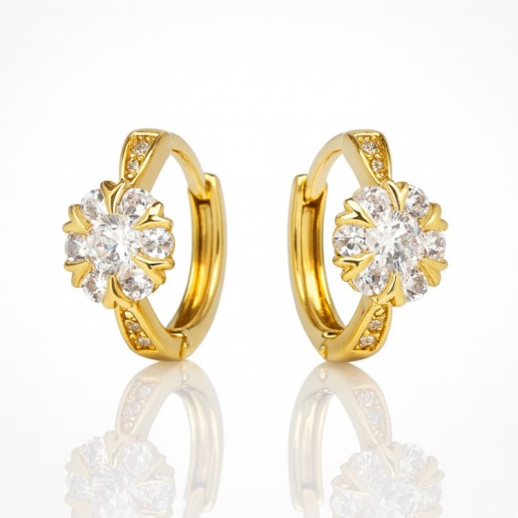 Kolczyki ze stali szlachetnej pozłacane 14k złotem, cyrkonie kwiatki KST3504