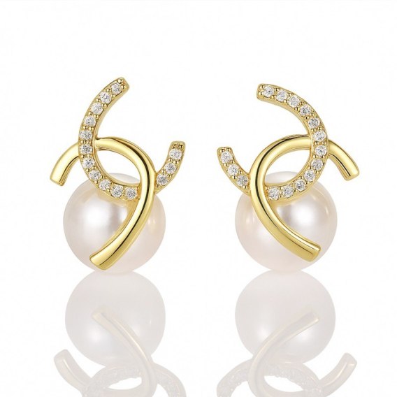 Kolczyki ze stali szlachetnej pozłacane 14k złotem, cyrkonie, perły KST3515