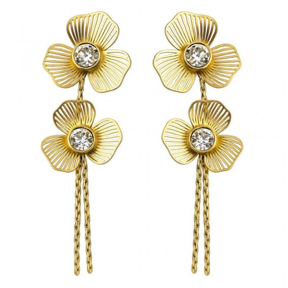 Kolczyki ze stali szlachetnej pozłacane 14k złotem, cyrkonie wiszące kwiaty KST3451