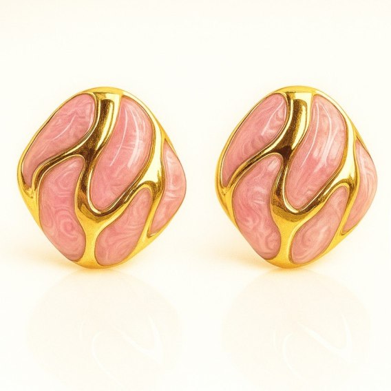 Kolczyki ze stali szlachetnej pozłacane 14k złotem, dekoracyjne róż KST3479R